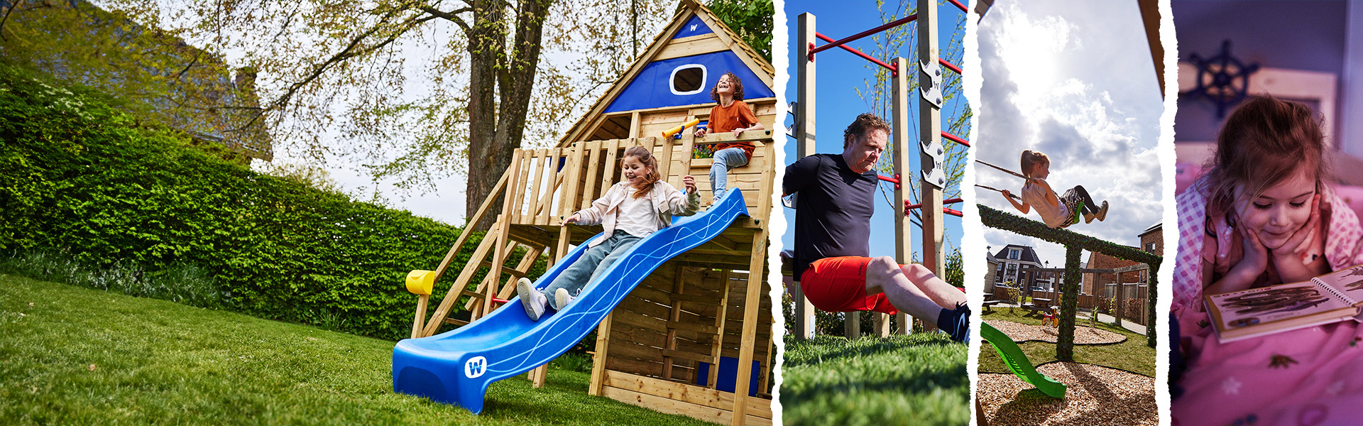 Wickey est un pionnier dans le développement d'aires de jeux de haute qualité et d'équipements de jeux extérieurs pour enfants. Nos équipements de jeux en bois créatifs et soigneusement conçus font de n'importe quel jardin ou aire de jeux public un merveilleux paradis d'aventure pour les pirates et les princesses ! Qu'il s'agisse d'une balançoire, d'un bac à sable ou d'une aire de jeux avec toboggan, tous les équipements de jeux Wickey impressionnent par leur haute qualité et leur design unique.