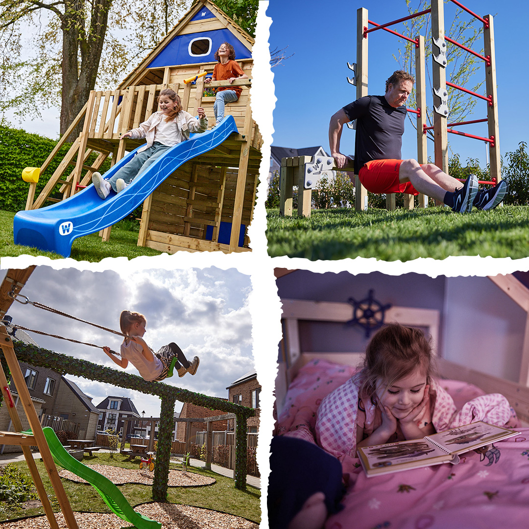 Combinez une aire de jeux pour enfants avec un portique de balançoire ou agrandissez une cabane de jeux avec un bac à sable, votre créativité n'a pas de limites ! Des accessoires multicolores sur votre aire de jeux ou votre cabane enfant sur pilotis rendent l'expérience de jeu parfaite. En plus de nombreuses années de divertissement, la sécurité de vos enfants est particulièrement importante pour nous. C'est pourquoi nous n'utilisons pour nos équipements de jeux pour jardin que du bois de haute qualité et imprégné en autoclave. L'imprégnation protège le bois des intempéries et garantit une longue durée de vie des équipements de jeux. Découvrez les possibilités infinies de jeu que Wickey vous offre et concevez dès maintenant votre paradis de jeu personnalisé !
