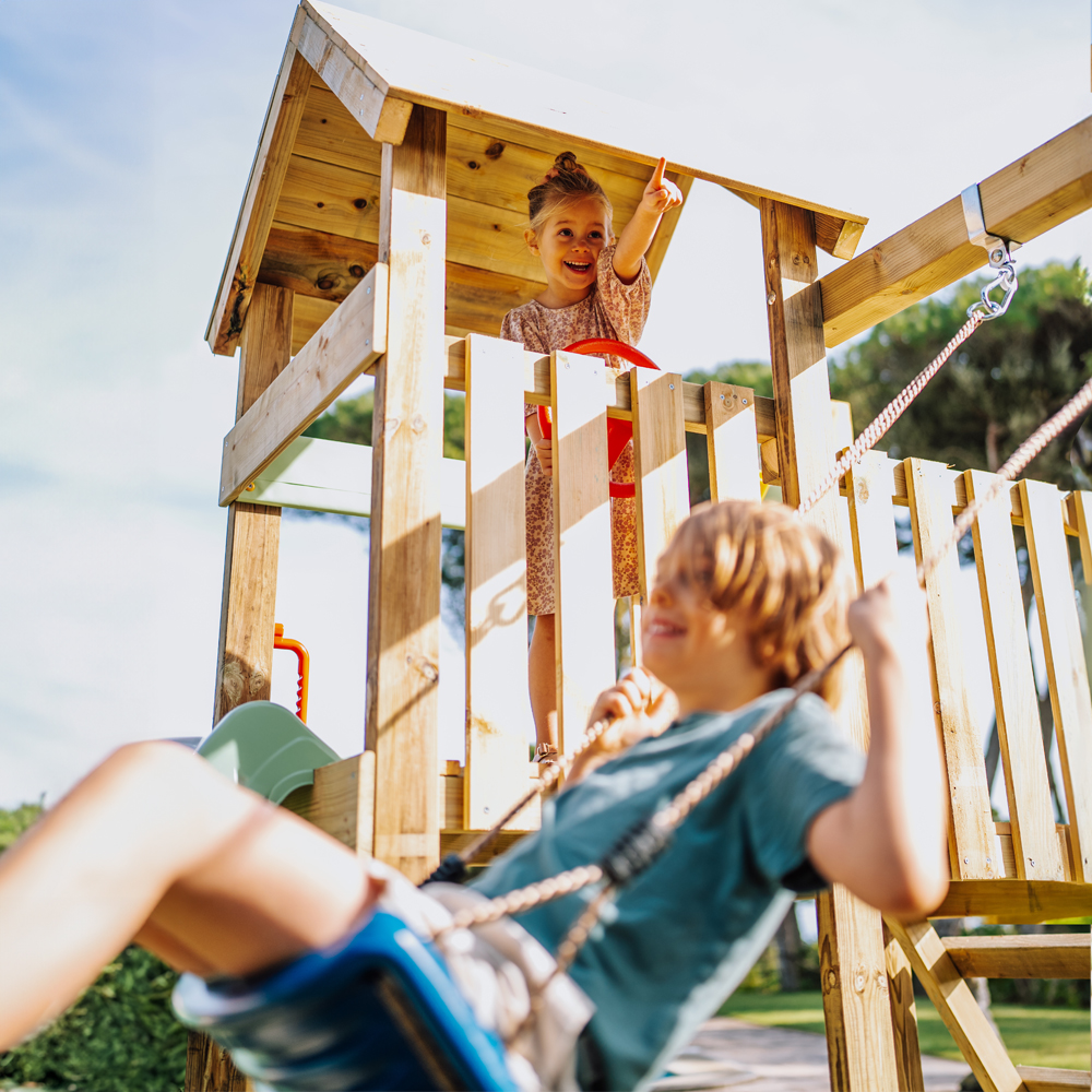 Outre le plaisir de jouer pendant de nombreuses années, la sécurité de vos enfants nous tient particulièrement à cœur. C'est pourquoi nous utilisons uniquement du bois de qualité imprégné sous pression pour nos équipements de jeux pour jardin. L'imprégnation protège le bois de toutes sortes d'intempéries et garantit une longue durée de vie. Découvrez les possibilités de jeu infinies que Wickey a à offrir et créez dès maintenant votre paradis ludique à l'extérieur !